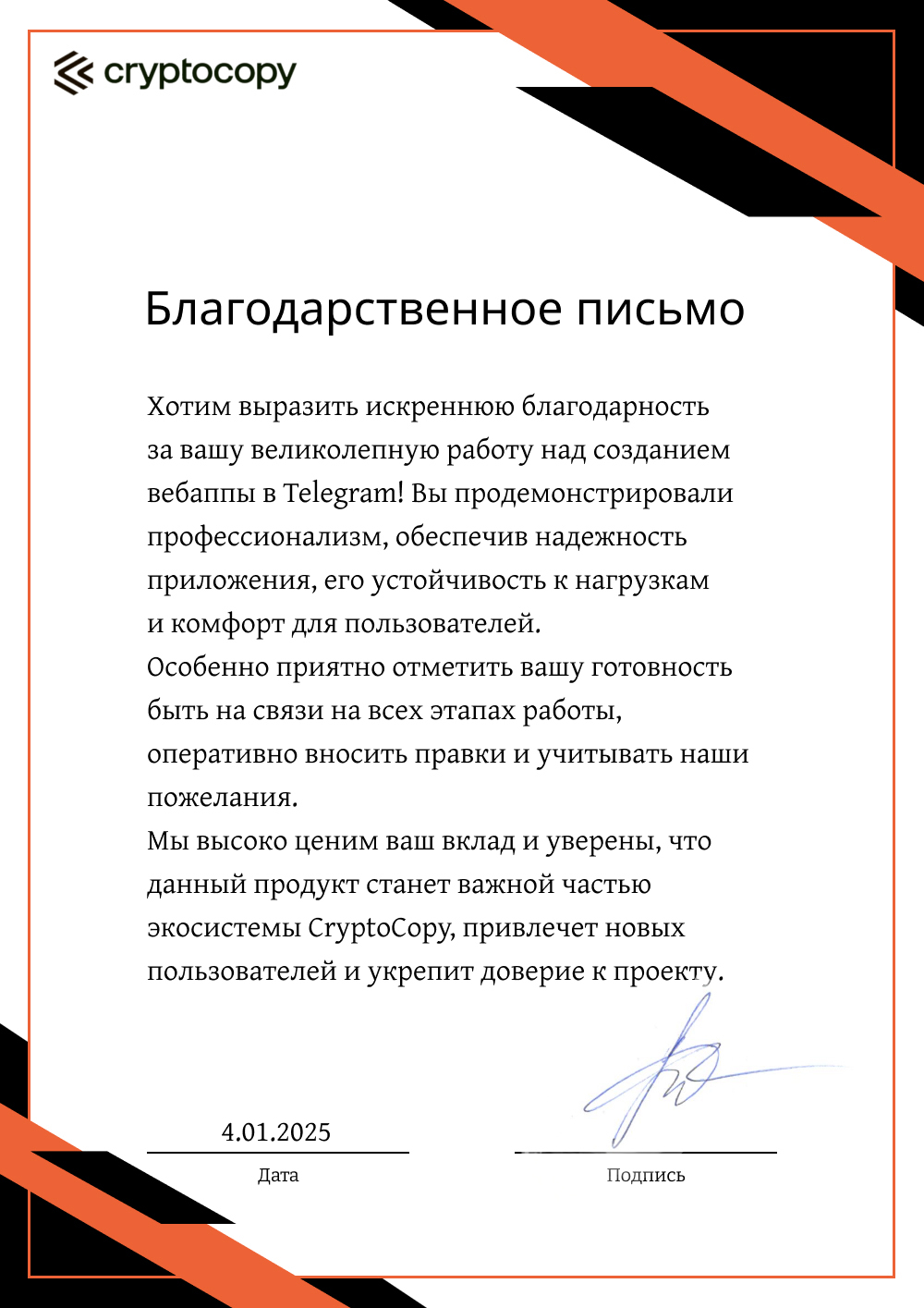 Веб-агентство GoldApp работает на рынке IT разработки с 2011 года. Я, как Founder компании и в прошлом веб-разработчик, привлекаю в команду только людей с реальным опытом в IT и склонностью к реализации собственных идей и стартапов. Являюсь CTO и адвайзером в нескольких блокчейн стартапах.